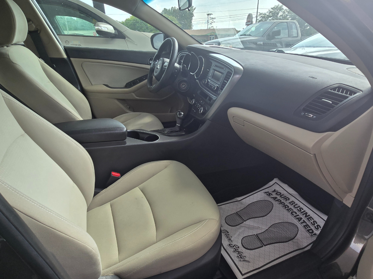 Base-level LX models come with a height-adjustable driver's seat with power lumbar support, power locks, windows and mirrors, heated exterior mirrors, a cooled glovebox and cruise control. The base sound system includes satellite-radio capability, Bluetooth hands-free calling features and steering-wheel audio controls. At the mid-range EX level, the Optima includes upgraded 17-inch alloy wheels, leather trim, wood door trim and metal bezels for the center console, plus leather upholstery, push-button start, a Smart Key system, dual-zone climate control, rear vents, a universal garage-door opener, a 10-way adjustable power driver's seat, additional interior lighting and floor mats. The SX gets sporty suspension, paddle shifters on the steering wheel, a sportier exterior appearance, LED taillights and 18-inch alloy wheels. The SX-Turbo obviously includes the more powerful engine, but also gets HID headlamps. Top of the line Limited models come with nearly every feature available, and also include 19-inch wheels, Napa leather seat-trim and exterior chrome accents.